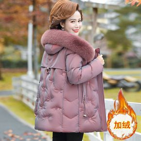 外贸跨境中年妈妈装冬装中长款加绒加厚羽绒棉服大码女...