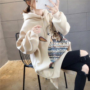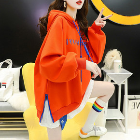 2021秋冬季新款潮韩版设计感宽松大码假两件字母连...