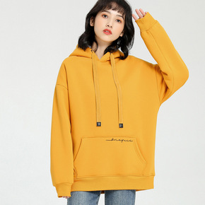 韩爆款卫衣女装2021秋冬新款宽松字母抽绳连帽卫衣...