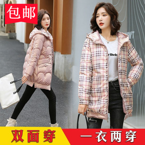 双面穿亮面免洗羽绒棉衣女 2021冬季新款中长款连...