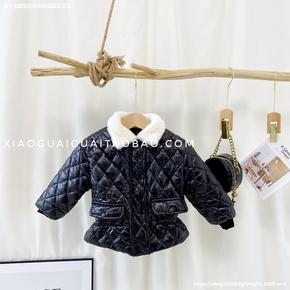 韩国童装2021秋季新款女童夹棉外套洋气宝宝冬装时...