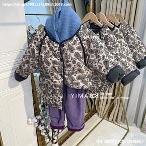 韩国童装2021冬装女童加绒加厚棉服儿童洋气碎花外...