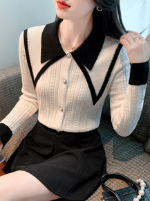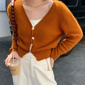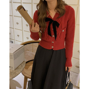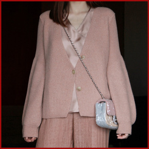 【不退不换】珍珠扣针织衫女冬款毛衣开衫法式外套女装...