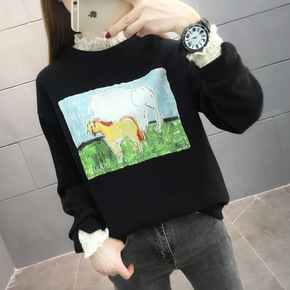 卡通印花半高领卫衣女长袖韩版宽松减龄显瘦chic套...