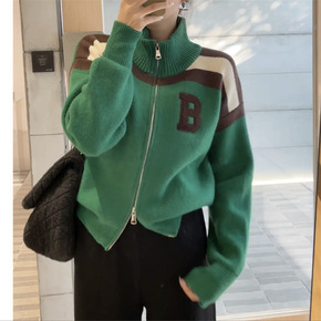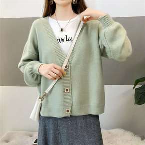 2021春秋季新款韩版通勤宽松短款针织衫外套V领灯...