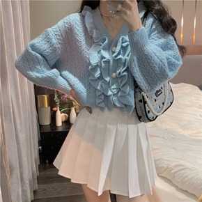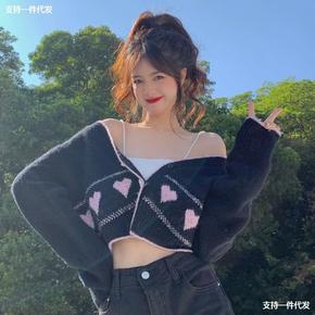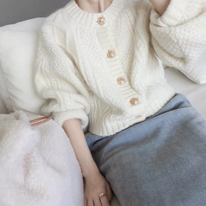 灯笼袖短款毛衣女开衫秋冬2022新款法式甜美减龄木...