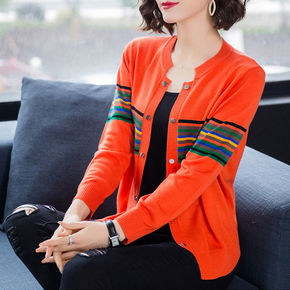 针织开衫外套女2022秋装新款韩版宽松短款上衣女时...
