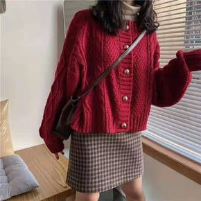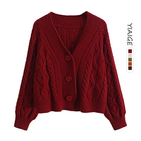 v领麻花毛衣开衫女宽松秋冬2021年新款小个子日系...