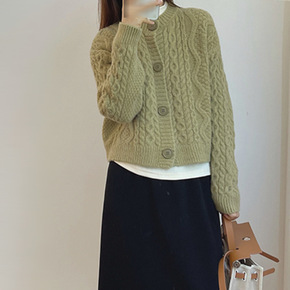 21秋冬季温柔厚实软糯慵懒宽松短款圆领麻花女式毛衣...