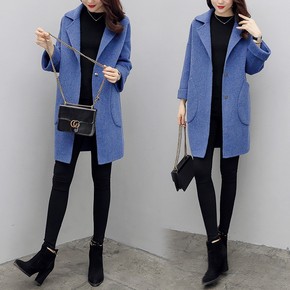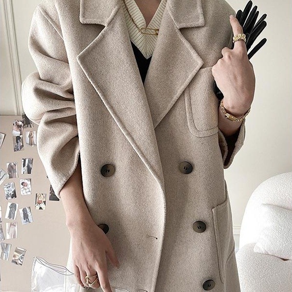 司南 口袋中长款双面毛呢大衣女羊毛小个子2021年...
