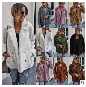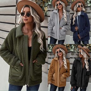 速卖通外贸新品ins风秋冬街拍复古女装保暖大毛领棕...