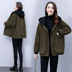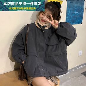 秋冬韩版2021新款学生宽松百搭复古工装加绒加厚长...