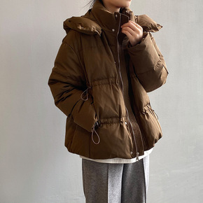 言双连帽棉衣女2021冬季新款韩剧棉服立领保暖收腰...