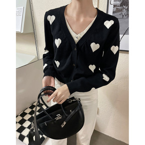 SZE STU黑色毛衣外套女装2021新款秋冬厚软...