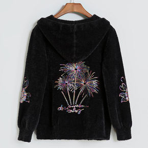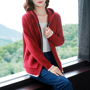 秋冬新款仿水貂绒外套女短款连帽毛衣女开衫褂子加厚保...