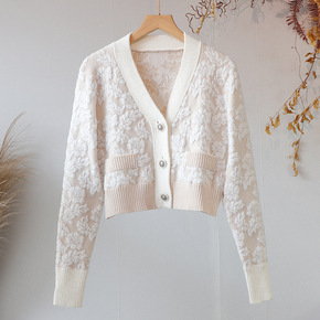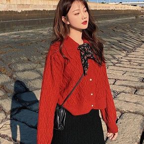 针织开衫毛衣短外套女慵懒风宽松百搭上衣法式复古秋冬...