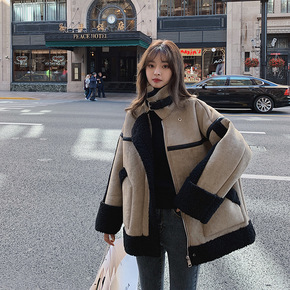 2021冬季新款皮毛一体羊羔毛外套女加厚宽松洋气立...
