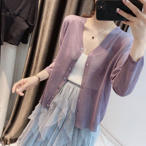 针织开衫女夏季薄款2021年新款冰丝防晒衣外搭空调...