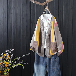日系川久爱心开衫女刺绣羊毛保玲针织外套明星同款pl...