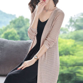 长款防晒衣仿亚麻外套女针织开衫女中夏季新款镂空宽松...