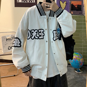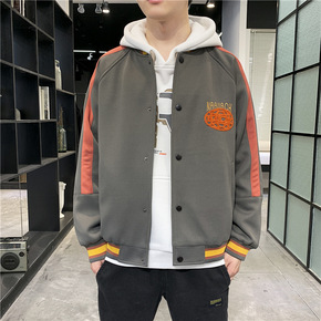 2021年秋季新款男青年加肥加大码棒球领印花夹克男...