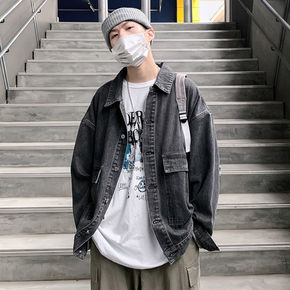 暗黑牛仔外套男潮ins秋季夹克宽松褂子男学生韩版潮...
