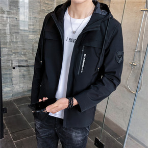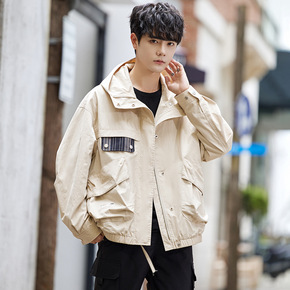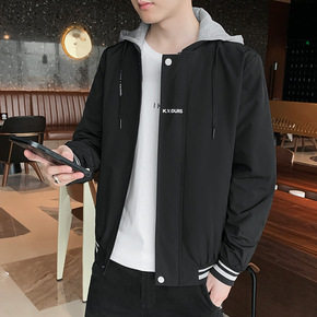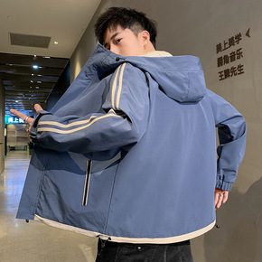 秋季夹克男2021新款青年潮流休闲运动风衣简约连帽...