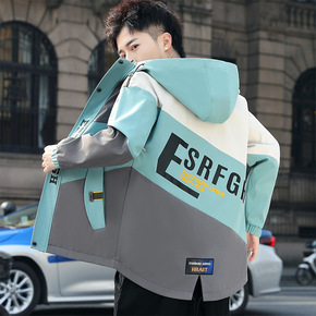 一件代发秋季2021新款青年韩版修身连帽休闲夹克男...