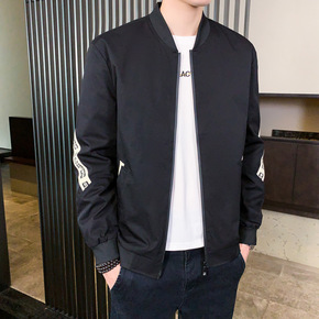 2020秋季新款两面穿男士夹克衫韩版修身时尚刺绣休...