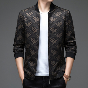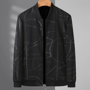 一件代发2021秋季夹克男薄款休闲中年男装上衣暗纹...