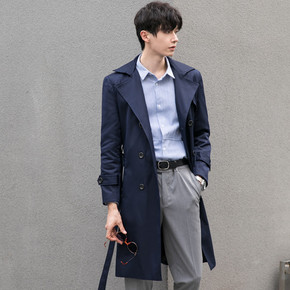 新风衣男中长款春秋季韩版潮流帅气英伦风大衣过膝宽松...