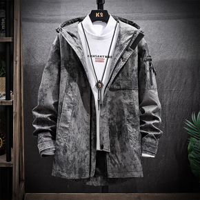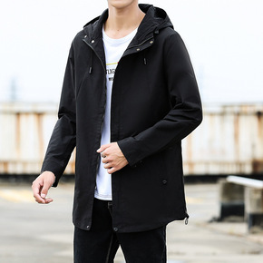 秋季外套男2022新款男士中长款连帽休闲夹克胖子纯...
