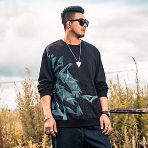 秋冬潮牌大码男装印花长袖卫衣...