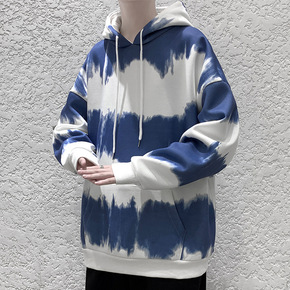 潮牌扎染卫衣加绒男潮流嘻哈宽松连帽衫上衣秋冬韩版学...