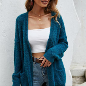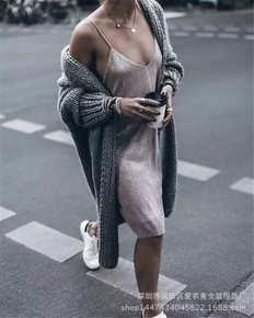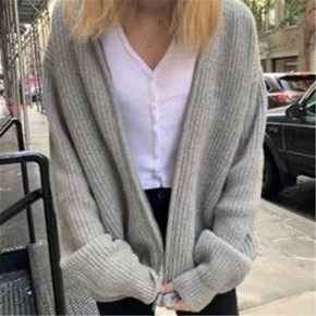 外贸女装秋冬爆款宽松加厚连帽针织开衫 慵懒风宽松拉...