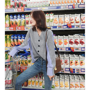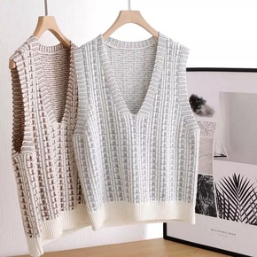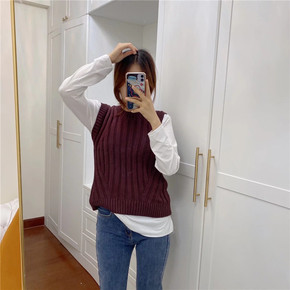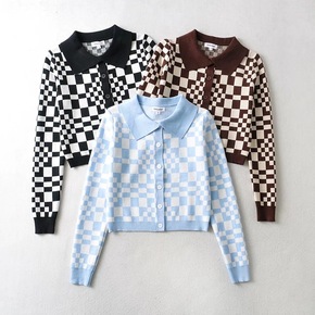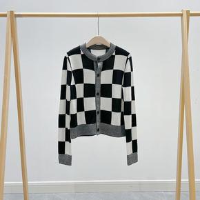 尾单女装 真的美爆啦 圆领格纹撞色羊绒衫女宽松长...
