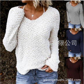 ebay 2020外贸爆款 冬日经典纯色长袖套头休...