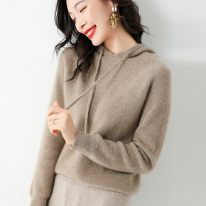 21秋冬新款纯色针织衫女式帽衫宽松连帽卫衣羊毛绒衫...