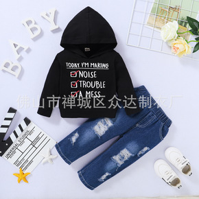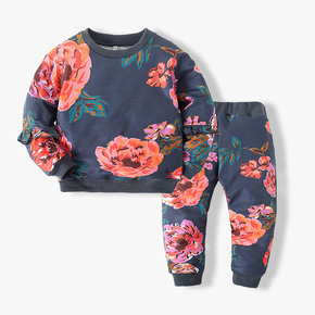 跨境童装2021欧美外贸长袖印花卫衣套装春秋韩版套...