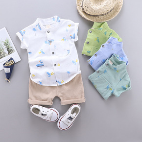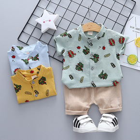 中小童男童条纹立领单排扣2021外贸夏季韩版短袖衬...
