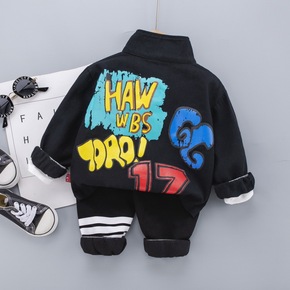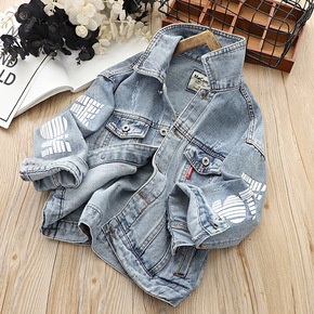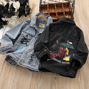 外贸韩版童装中大童男童外套儿童牛仔外套印花款w11...