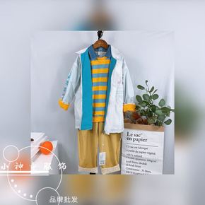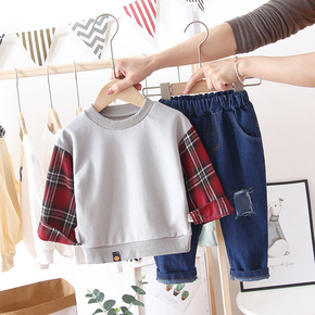 外贸童装批发童套装款韩版儿童装男孩拼接卫衣春秋款显...