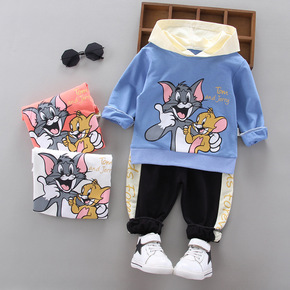 2021春新款儿童套装外贸童装男女童条纹卡通卫衣牛...