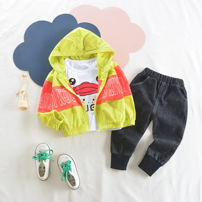 2021新款儿童春装外贸童装宝宝洋气开衫连帽外套男...