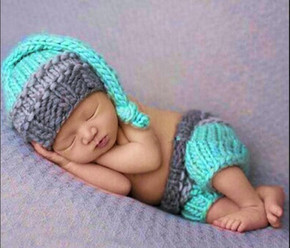 跨境新生儿蓝色精灵童套装短裤套装奶棉毛线新生儿摄影...