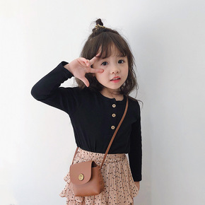 纯色儿童吸汗长袖 3-15岁春秋男女童装T恤批发 ...