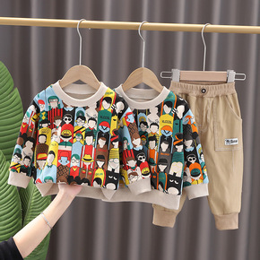 童装2022春款韩版男女童宽松休闲卫衣套装儿童棉长...