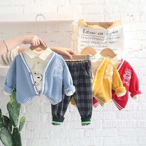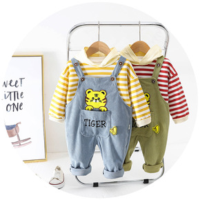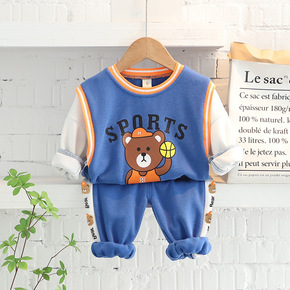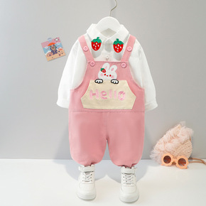 春秋季儿童背带裤套装新款童装男女童宝宝洋气两件套小...