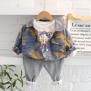 男童牛仔套装春款2022新款洋气炸街三件套春秋款中...