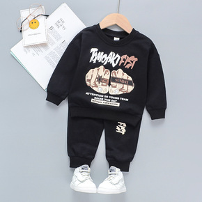 儿童套装男女小童0-6岁字母拳头潮流印花纯色长袖长...